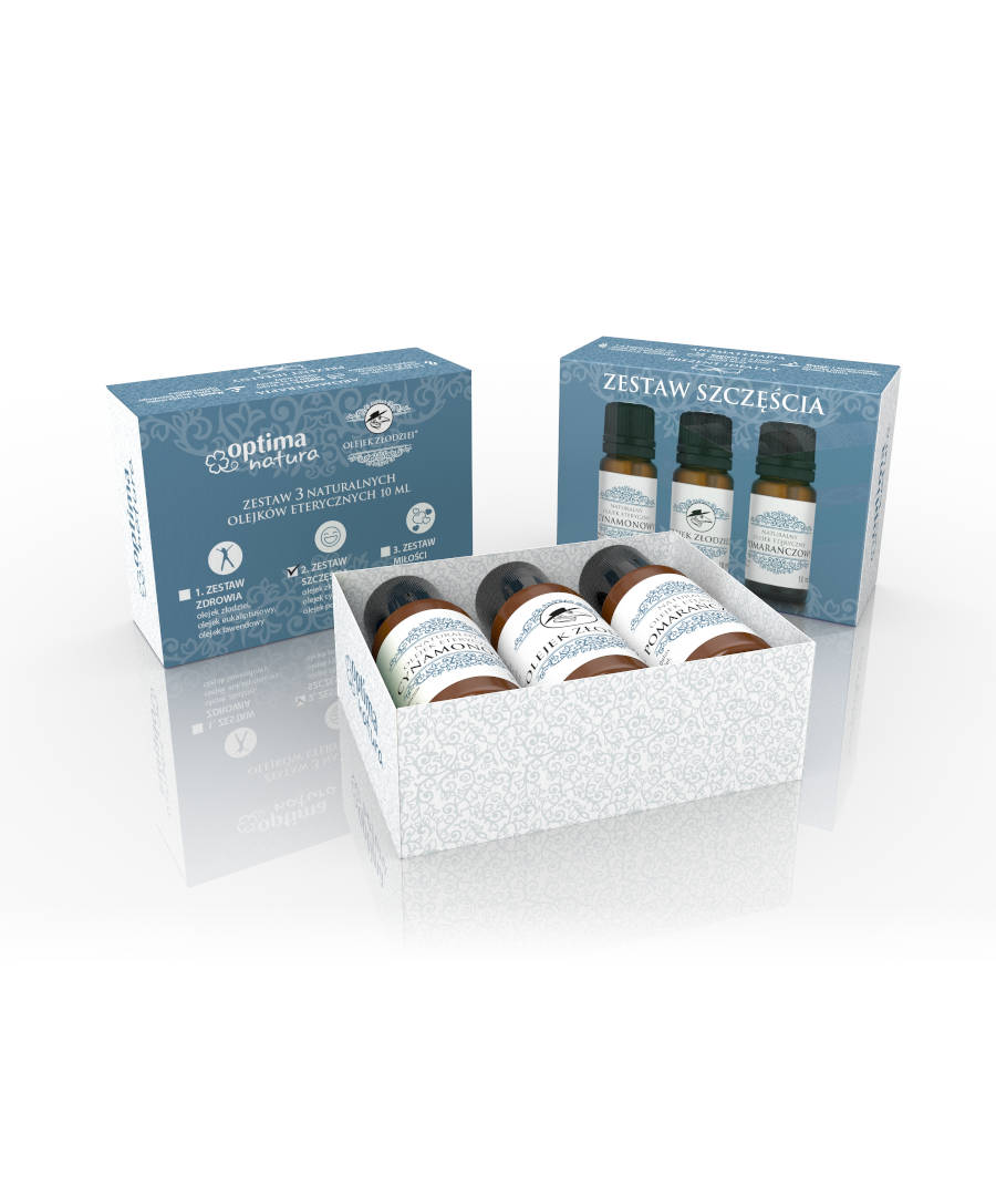 To niebanalny i praktyczny upominek, który idealnie sprawdzi się w aromaterapii. Olejek Złodziei ® orzeźwia i pomaga uniknąć jesiennych i zimowych infekcji, olejek cynamonowy przyjemnie rozgrzewa, a olejek pomarańczowy pomaga się zrelaksować i wprowadza wspaniały nastrój. Zestaw szczęścia to świetny pomysł na obdarowanie bliskiej osoby!